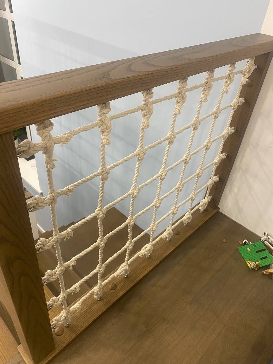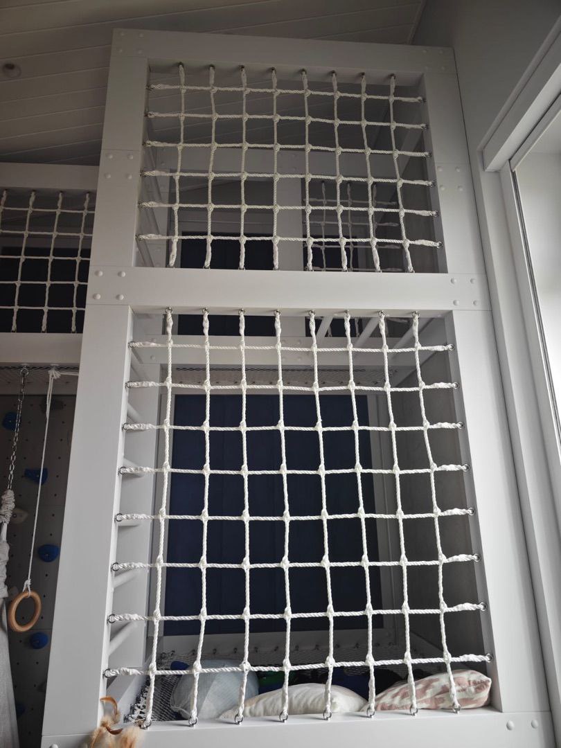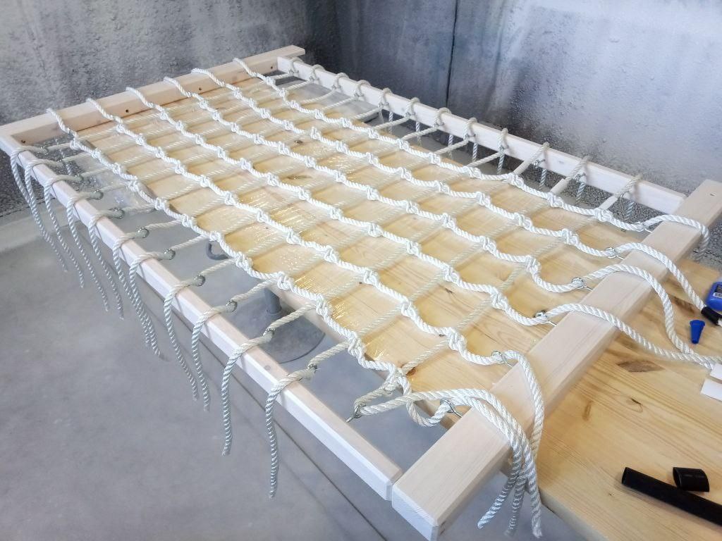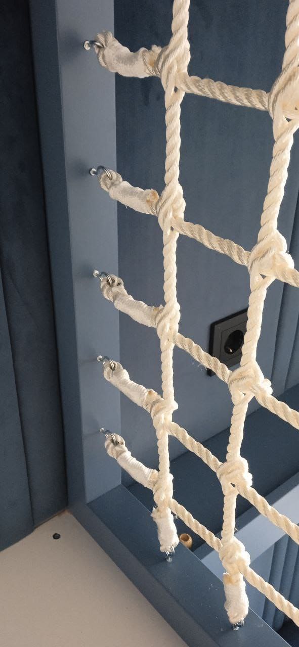 Особенности монтажа и заказа: Для идеального натяжения размер изготавливаемой сети должен быть на 10-15 см меньше габаритов проема с каждой стороны. Сеть крепится и натягивается свободными концами канатов по всему периметру. Важно: Если с какой-либо стороны крепление не предусмотрено, обязательно укажите это в чертеже — мы эстетично заделаем концы канатов на этой стороне.
