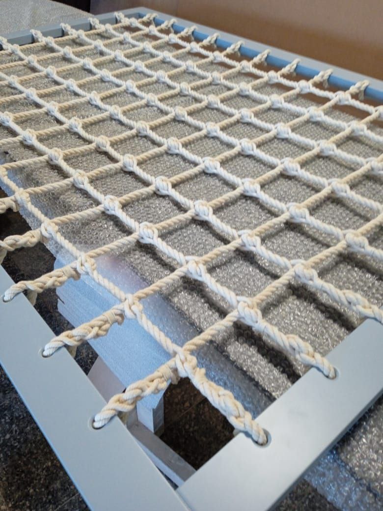 Как заказать: Для расчета стоимости и запуска в производство нам потребуется чертеж или схема. Укажите: выбранный материал, размер ячейки, габариты самой сети (в ячейках) и необходимую длину свободных концов каната для монтажа. Цена рассчитывается индивидуально под каждый проект.
